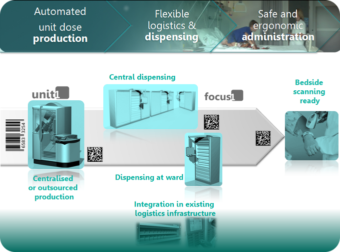 - Transformation into unitdoses can be organised in the central hospital pharmacy or at external premises (see partners section).